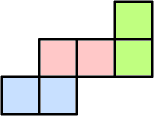 Das einzige fehlende Domino-Hexomino, das den oben angeführten Kriterien genügt sieht so aus. Natürlich kann es auch gedreht oder gespiegelt sein.